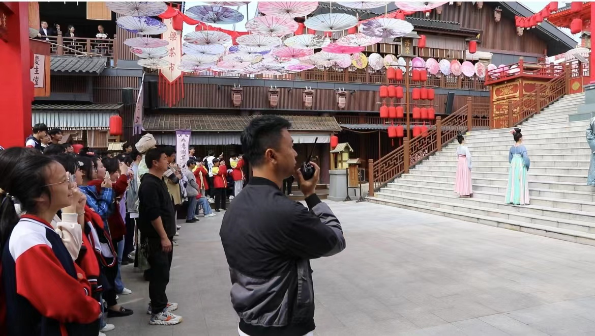 譚凱是開(kāi)門(mén)子文旅公司唐茶文化運(yùn)營(yíng)管理部的舞臺(tái)總監(jiān),入職黑貓集團(tuán)已有十二年。自2021年景區(qū)開(kāi)園以來(lái),他把全部的心血和汗水都傾灑在熱愛(ài)的事業(yè)上。作為一名景區(qū)工作者,他始終堅(jiān)持以游客為中心,保證每一位游客的游玩體驗(yàn),謹(jǐn)記“沖在第一線(xiàn)、藏在舞臺(tái)后”理念,經(jīng)常在景區(qū)還沒(méi)開(kāi)園前就檢查布置好所有的道具、音響及服裝等前期準(zhǔn)備工作;表演開(kāi)始后,他藏在舞臺(tái)背后,時(shí)刻關(guān)注現(xiàn)場(chǎng)變化,為演出默默地保駕護(hù)航,成為舞臺(tái)背后最堅(jiān)強(qiáng)的后盾。